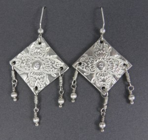 Diamond Dangle Earrings EDD01 Fine Silver Earrings with Clear Cubic Zirconias wirewrapped with Sterling Silver Beads $75 Click to share on Facebook (Opens in new window) Facebook Click to email a link to a friend (Opens in new window) Email Click to share on X (Opens in new window) X Like Loading... Related