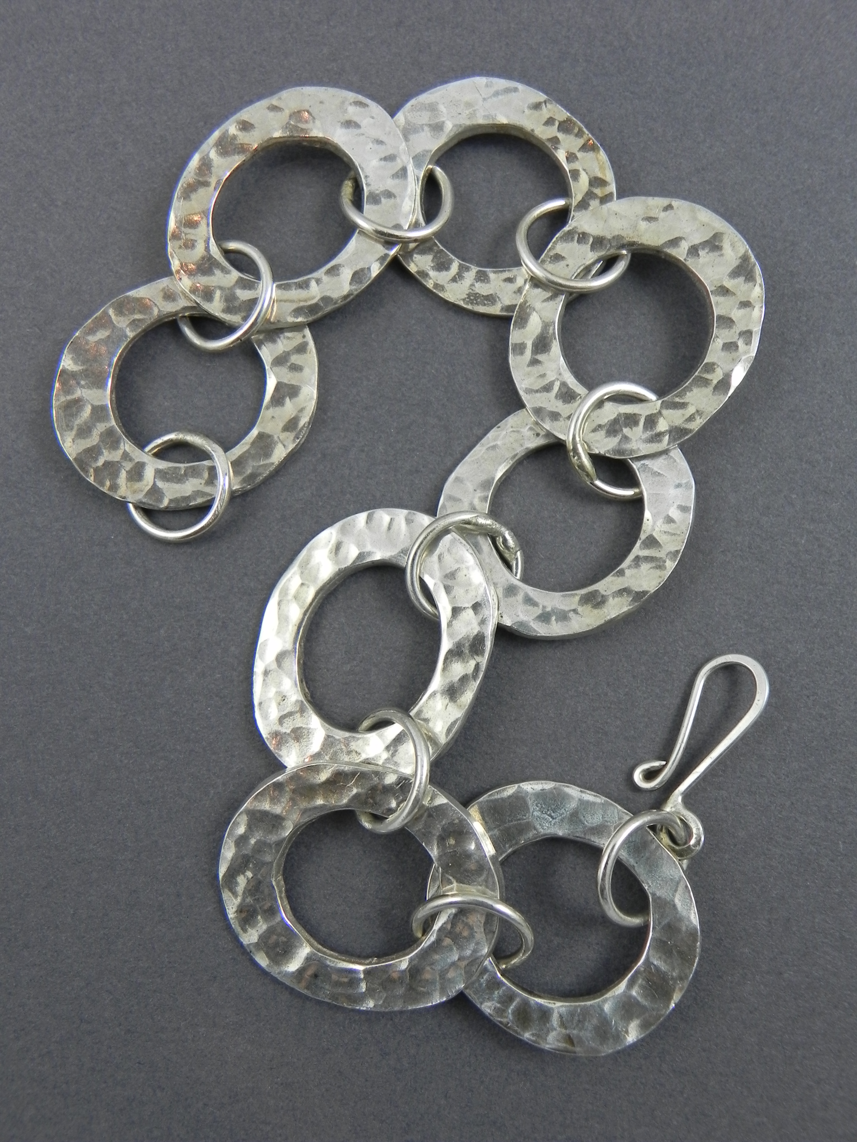 Hammered Silver Circles Bracelet BHSO01 Fine Silver Hammered Circles Bracelet $225 Bracelet length is approximately 7.5″ Click to share on Facebook (Opens in new window) Facebook Click to email a link to a friend (Opens in new window) Email Click to share on X (Opens in new window) X Like Loading... Related