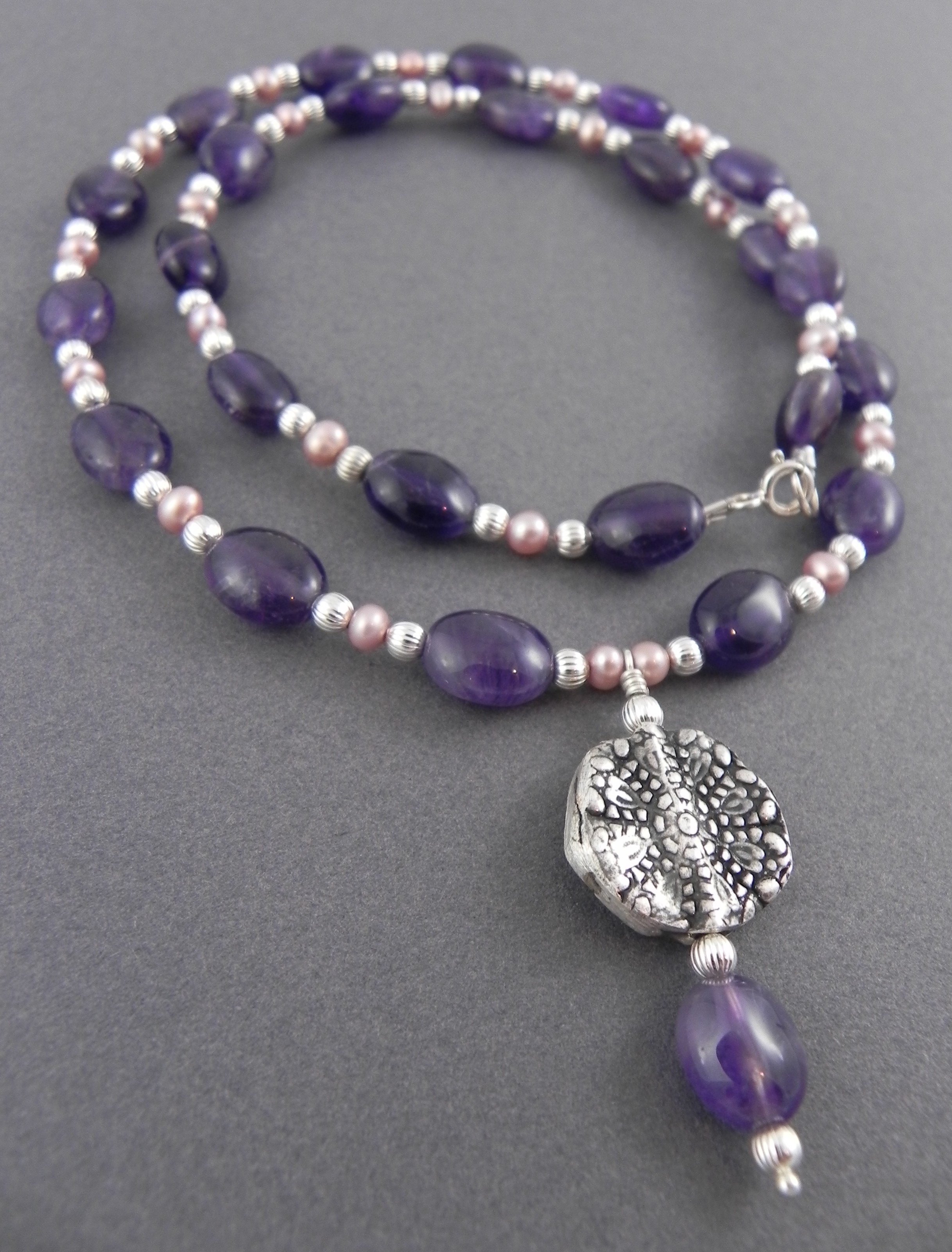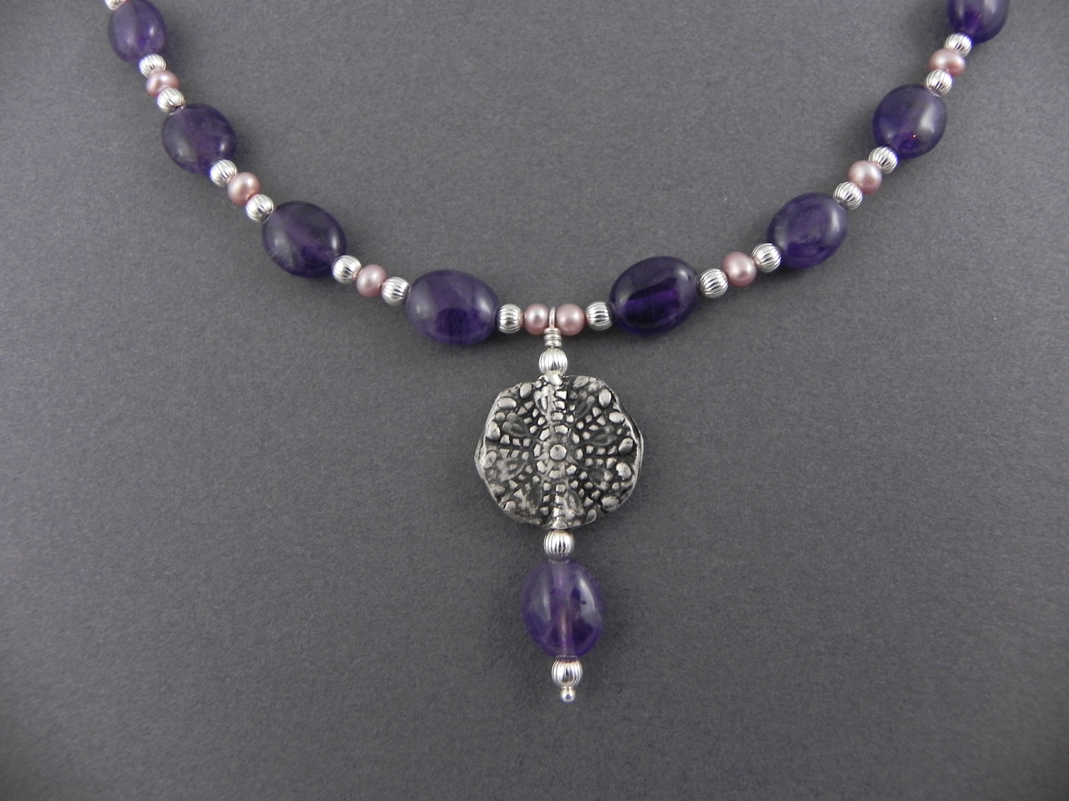Purple/Pink Beads and Coin NBRC01 Fine Silver Reversible Pendant with Amethyst, Pink Fresh Water Pearls and Sterling Silver Beads $95 Length: 18″ Click to share on Facebook (Opens in new window) Facebook Click to email a link to a friend (Opens in new window) Email Click to share on X (Opens in new window) X Like Loading... Related