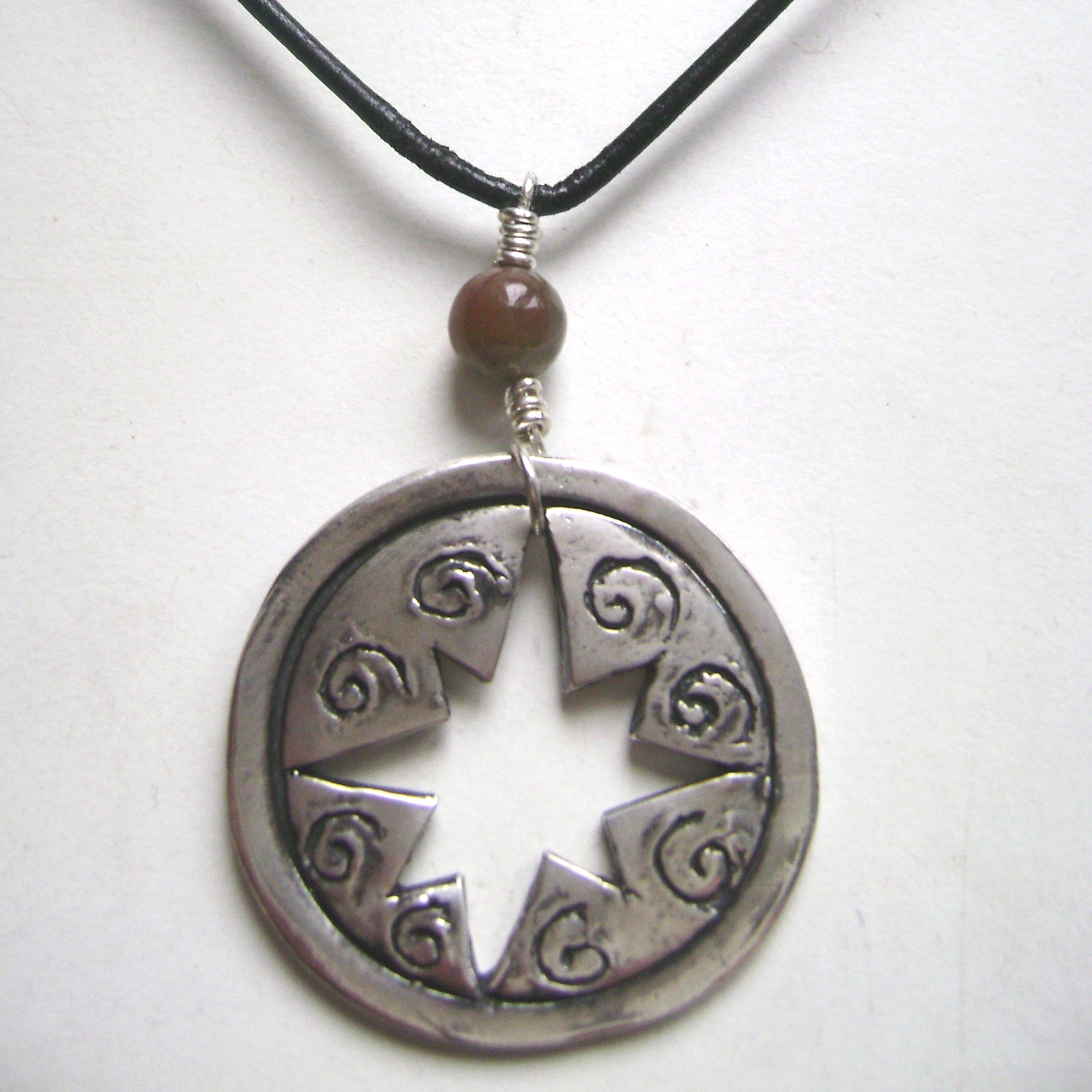 Star Cutout NSC01 $69 Fine Silver Cutout Star Medallion with Fancy Jasper on Black Leather Cord Available: 16″-18″ NSC02 $78 Fine Silver Cutout Star Medallion with Fancy Jasper on Sterling Silver Chain Available: 16″-18″ Click to share on Facebook (Opens in new window) Facebook Click to email a link to a friend (Opens in new window) Email Click to share on X (Opens in new window) X Like Loading... Related