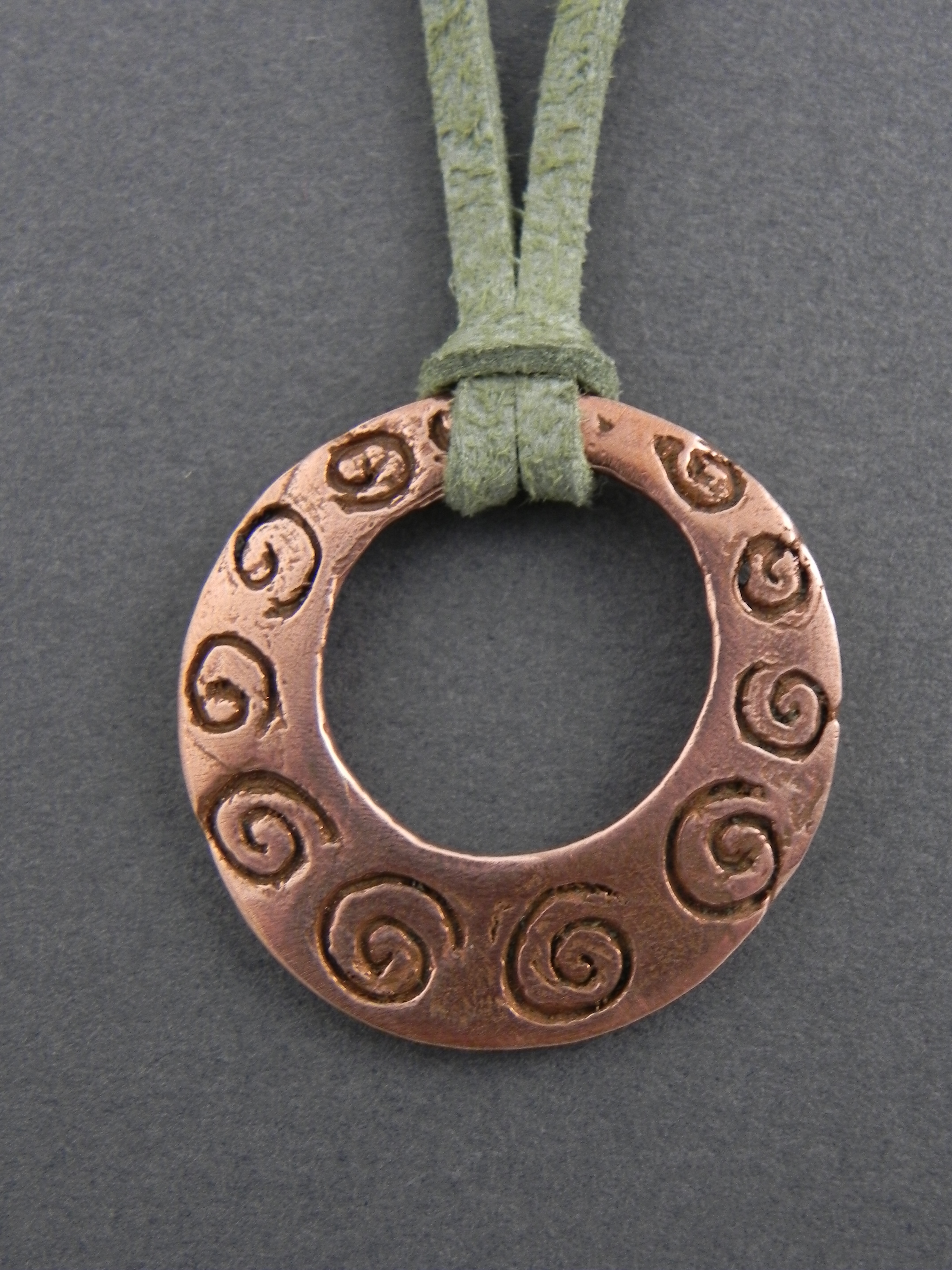 Copper Circle Pendant with Spirals