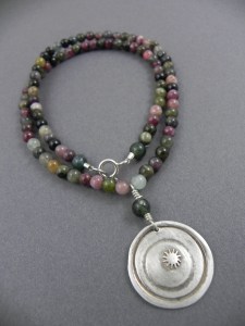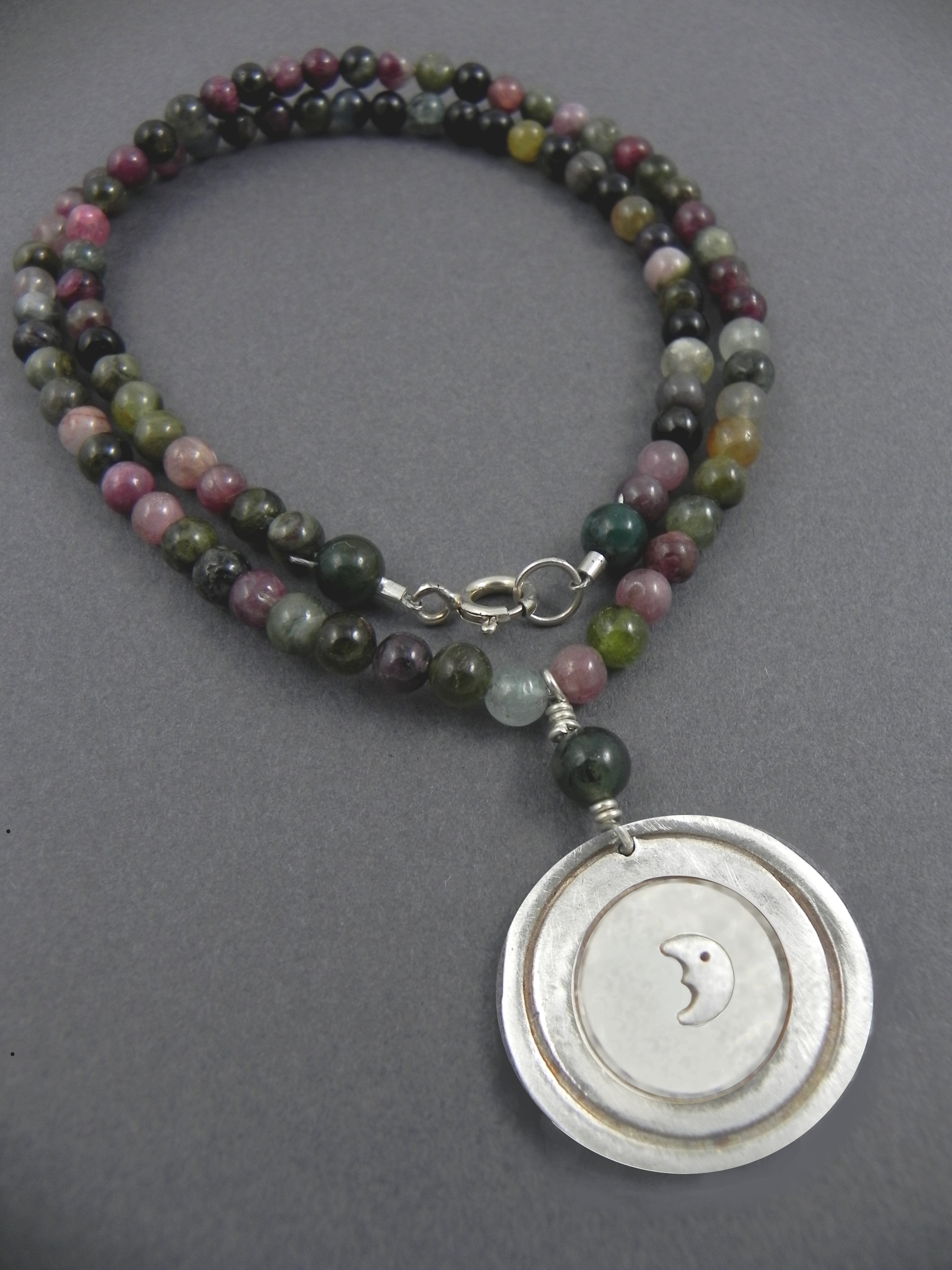 Fine Silver Sun/Moon Reversable Pendant with Watermelon Tourmaline