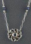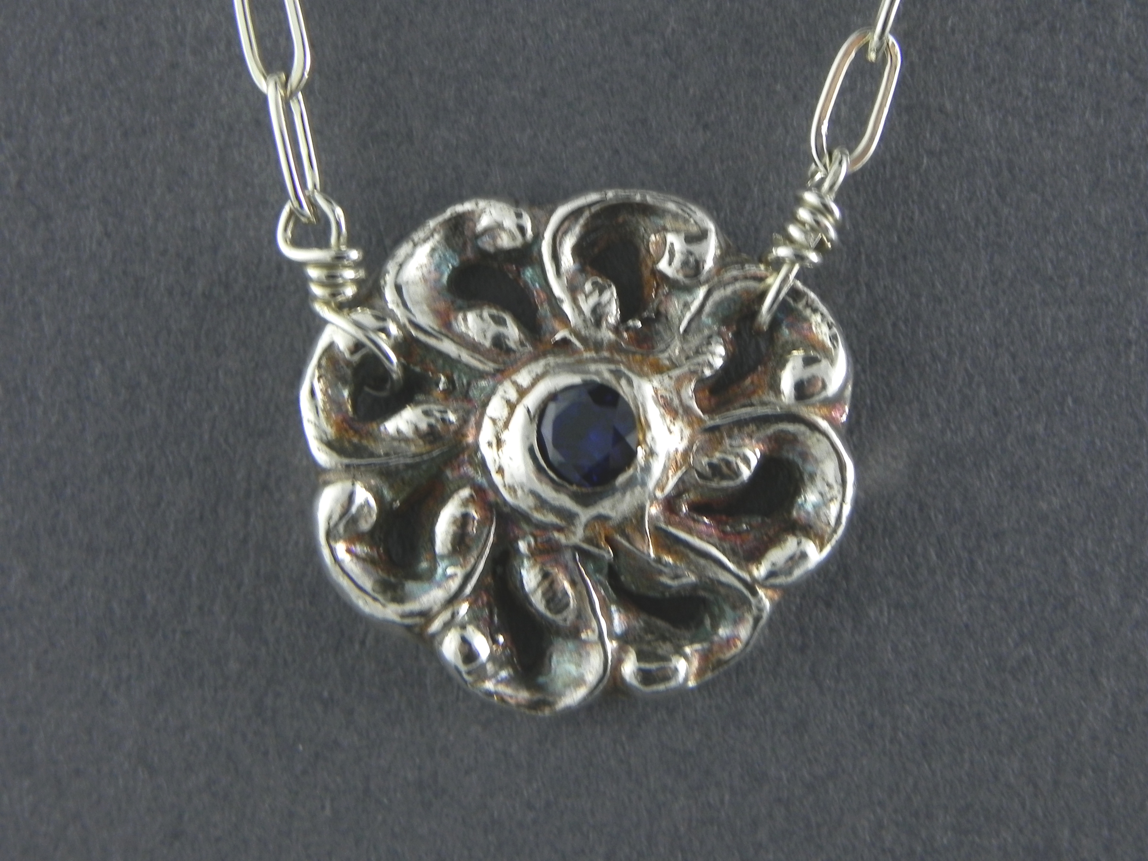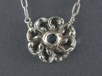 Fine Silver Flower w/ Blue Center Cubic Zirconia, Sodalite, Sterling Silver