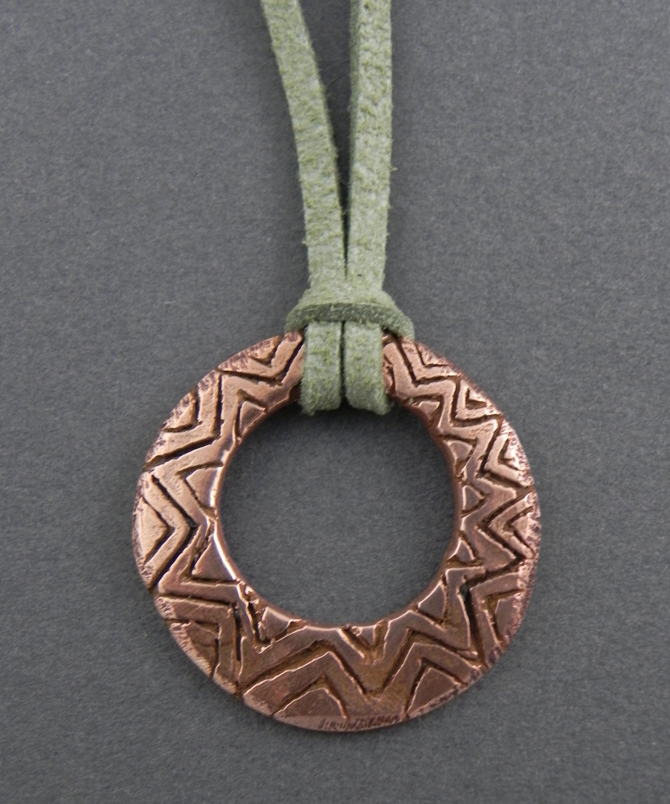 Copper Circle Pendant with Zigzags $45