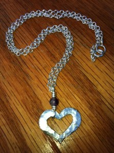 Hammered Open Heart NOH1 Fine Silver hammered open heart pendant & Amethyst on 16″ chain $69 Click to share on Facebook (Opens in new window) Facebook Click to email a link to a friend (Opens in new window) Email Click to share on X (Opens in new window) X Like Loading... Related