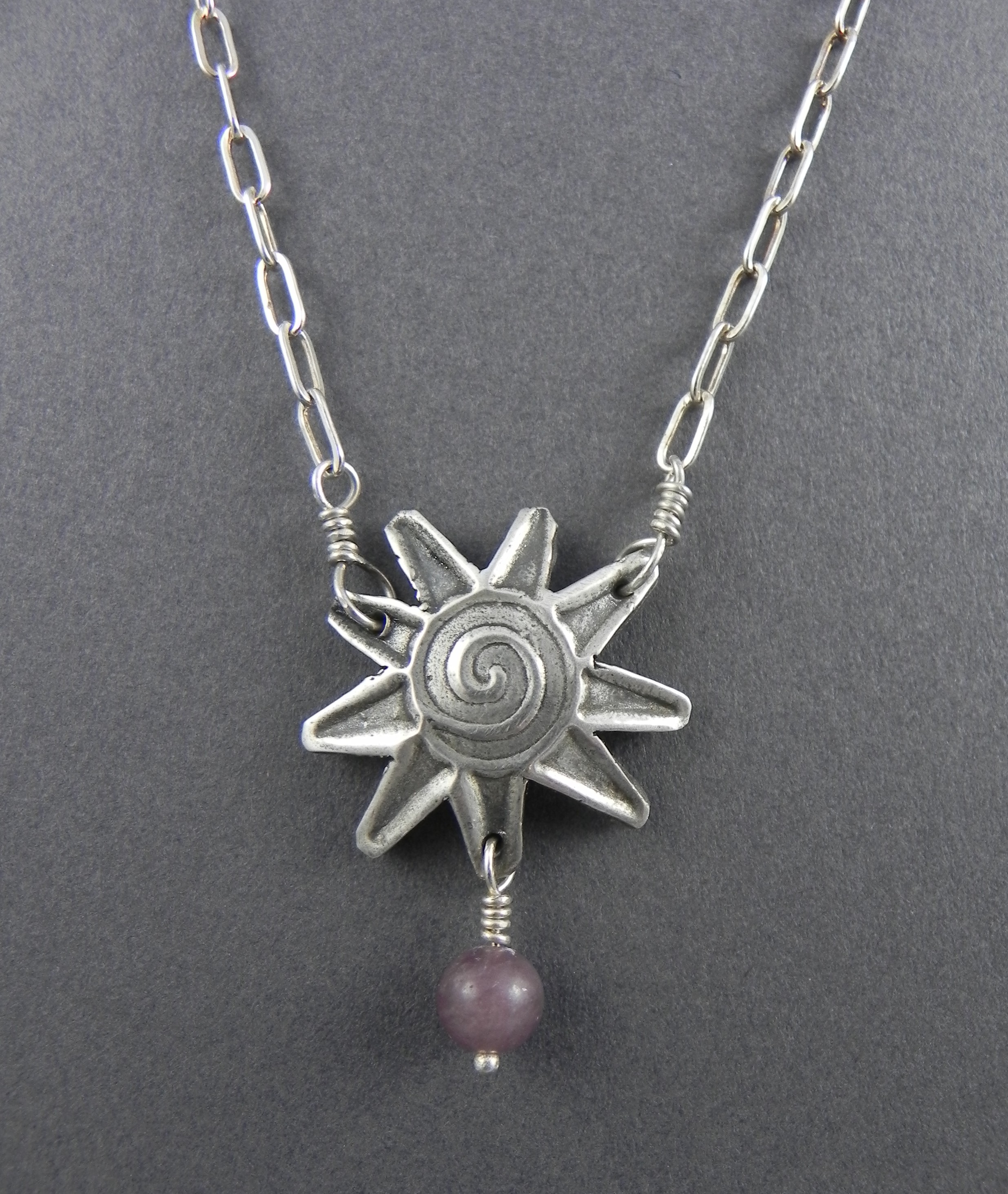 Sun Bead Necklace NSS01 Fine Silver Sun Pendant, Fancy Jasper or Lepidolite, Sterling Chain $75 Available Length: 16-18″ Click to share on Facebook (Opens in new window) Facebook Click to email a link to a friend (Opens in new window) Email Click to share on X (Opens in new window) X Like Loading... Related