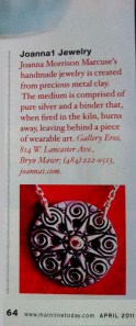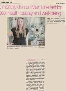 A new artisanal jewelry store is catching moviegoers’ eyes at the Bryn Mawr Film Institute. Haverford jewelry maker Joanna Morrison Marcuse opened her first freestanding bauble boutique, Joanna 1 Jewelry, across from MilkBoy Coffee in the institute’s arcade Nov. 5. Joanna’s signature creations are made from PMC (precious-metal clay) silver, which takes on a unique look after firing in the kiln.